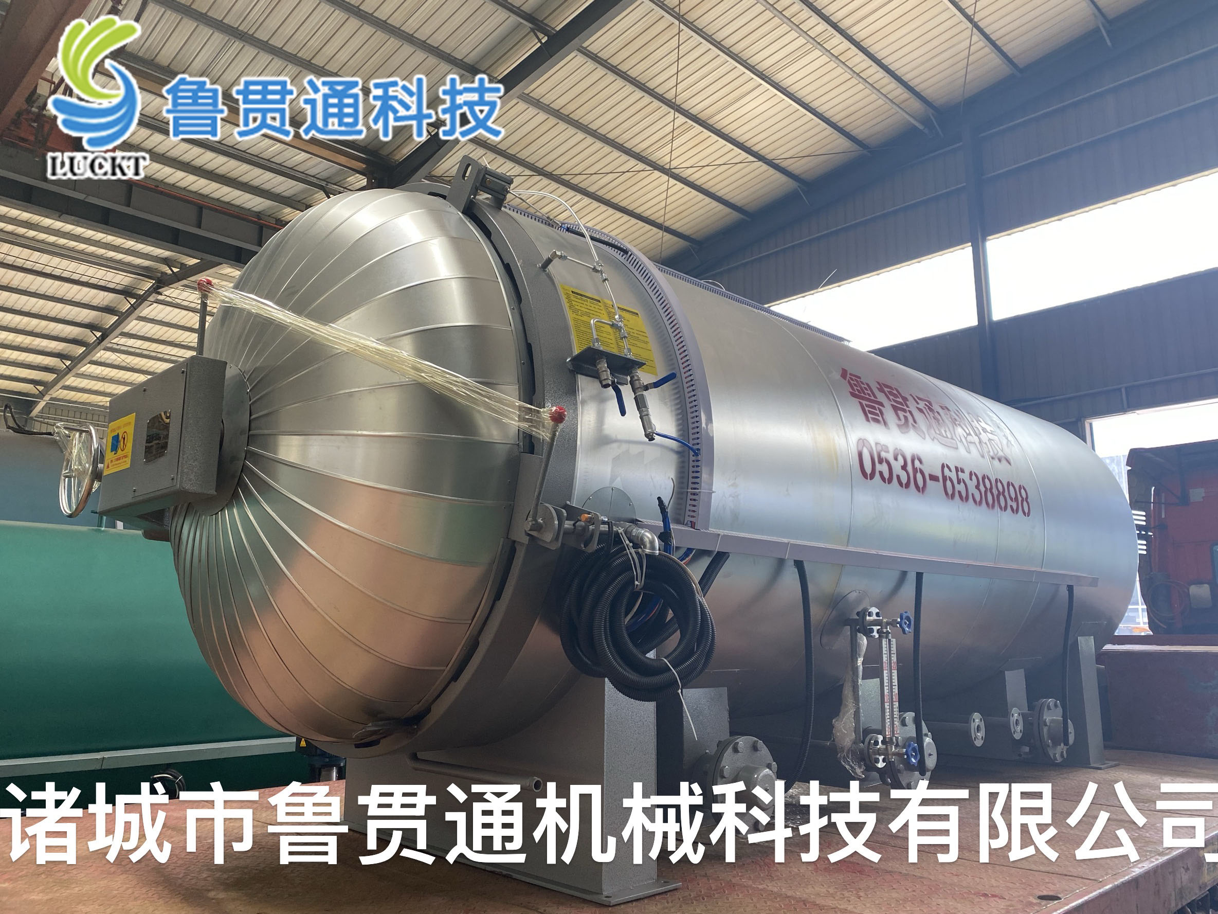 发货一台硫化罐,鲁贯通机械,可根据客户厂房条件和生产需求定制设备。